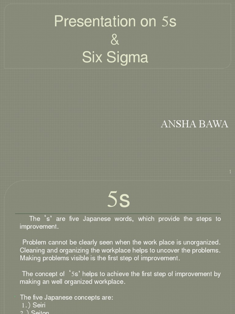 The concept of ‘5s’ helps to achieve the first step of improvement by