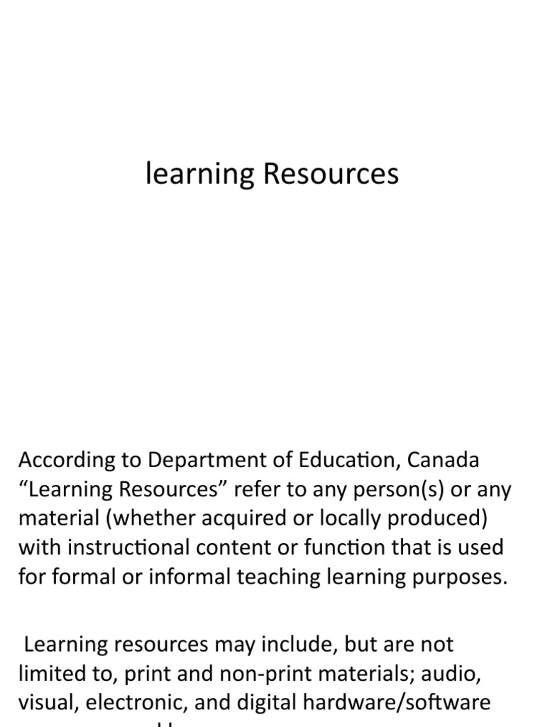 Learning resources may include, but are not