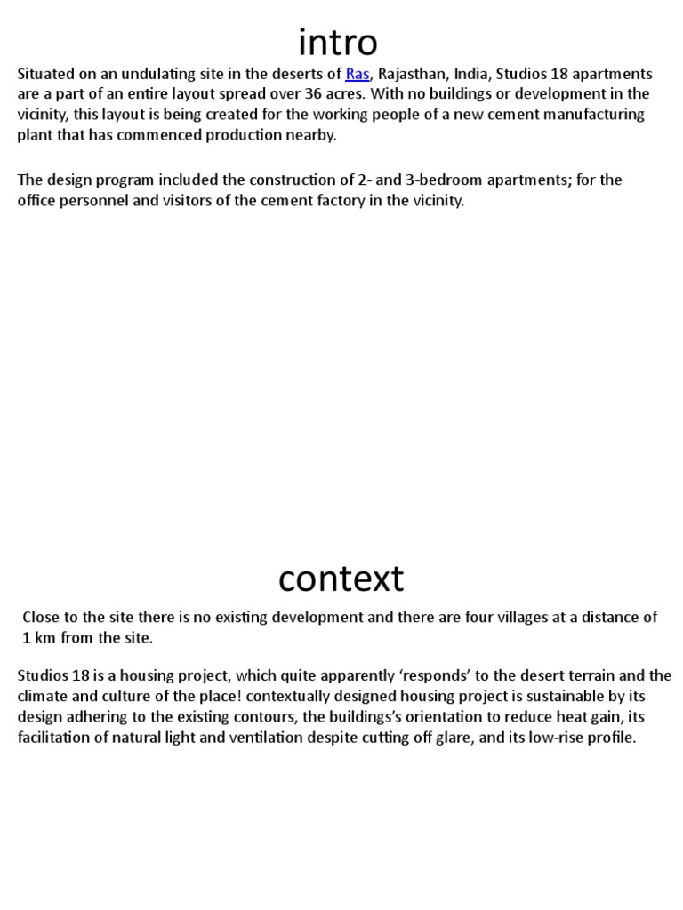 Situated on an undulating site in the deserts of Ras, Rajasthan, India, Studios 18 apartments