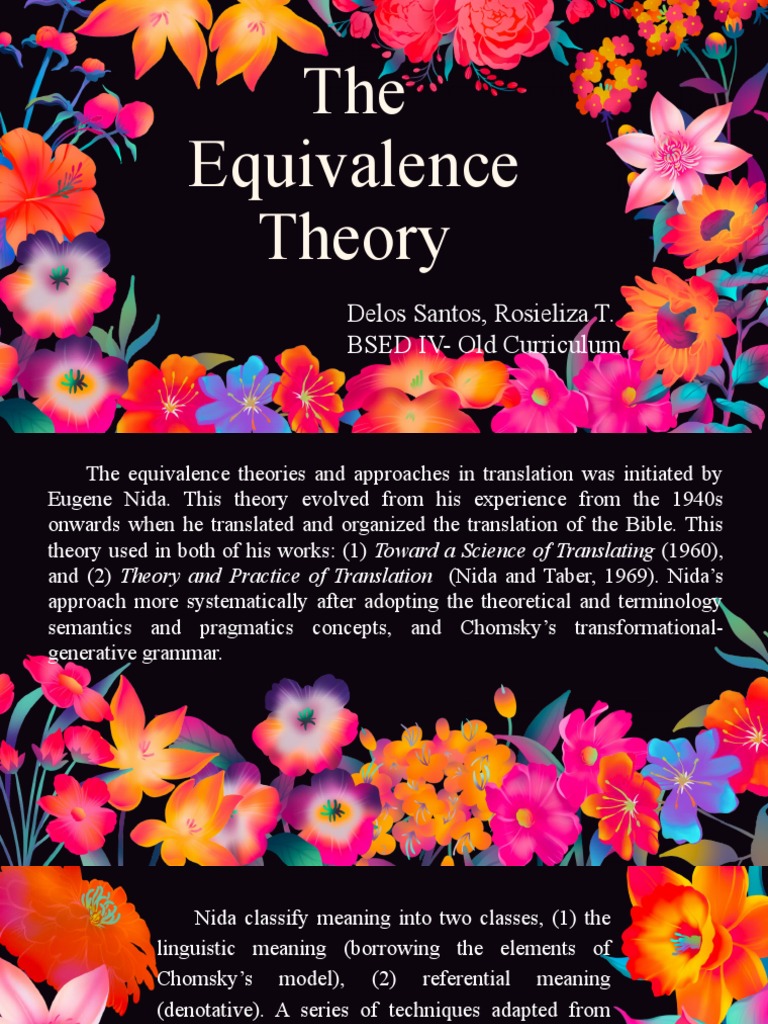 Regarding the equivalence, Nida proposed two types of equivalence: (1)
