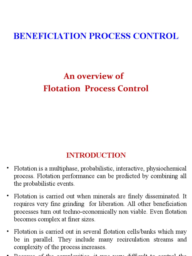 • Flotation is a multiphase, probabilistic, interactive, physiochemical