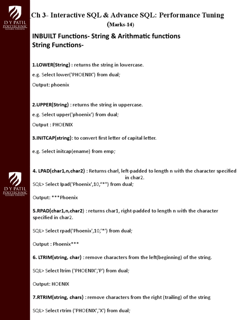 INBUILT Functions- String & Arithmatic functions