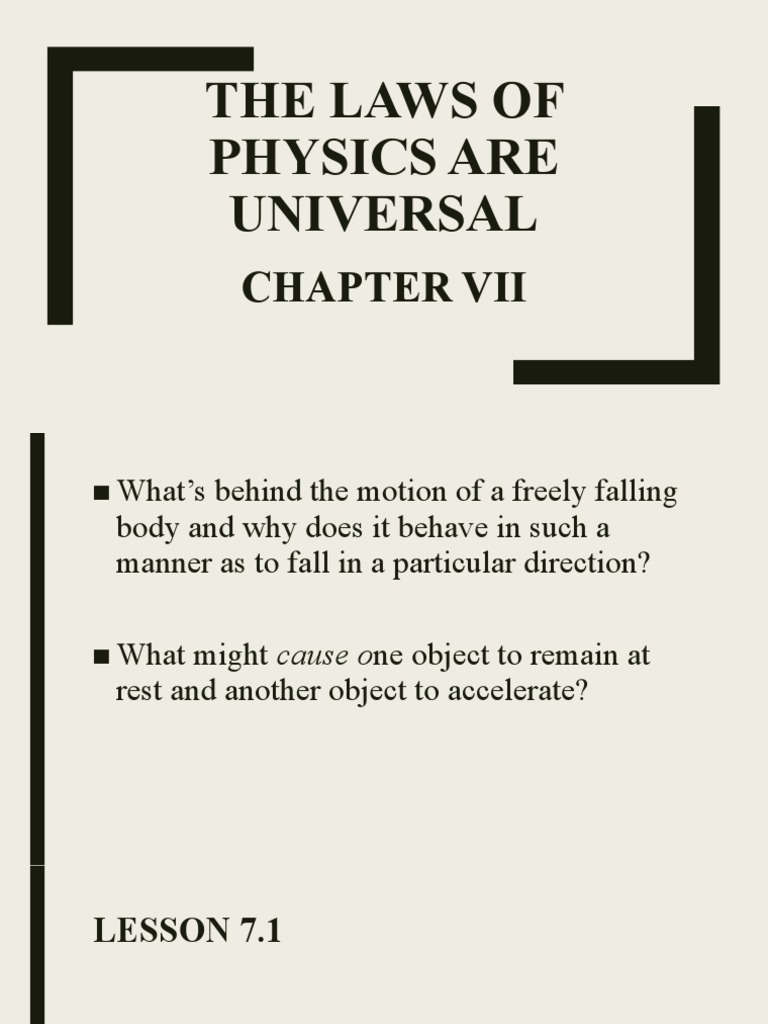 ■ Galileo, with his clear logic and mathematical knowledge, showed that a body moving