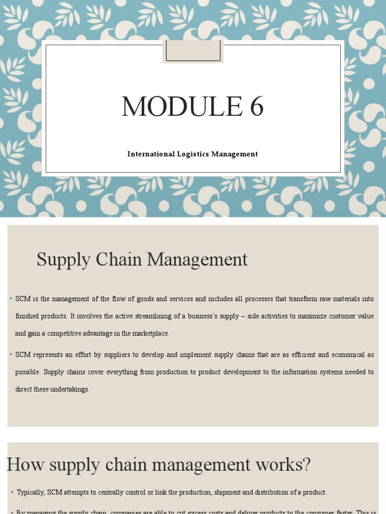 ◦ SCM represents an effort by suppliers to develop and implement supply chains that are as efficient and economical as