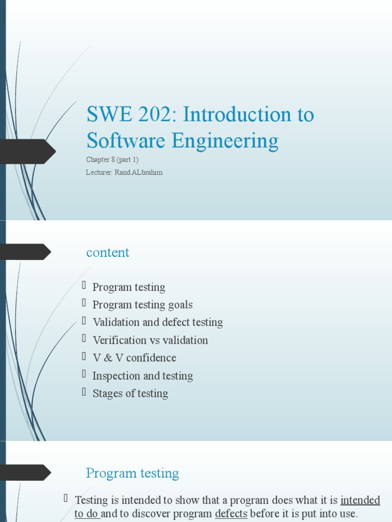 Software testing Concerned with exercising and