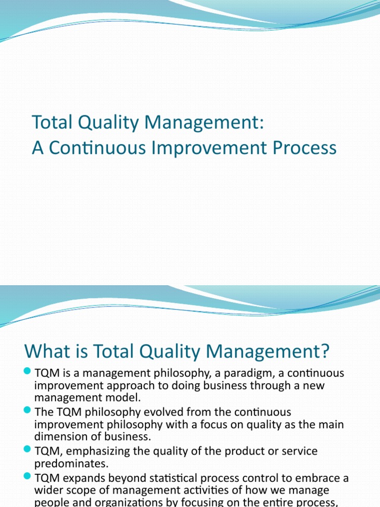 TQM is a management philosophy, a paradigm, a continuous