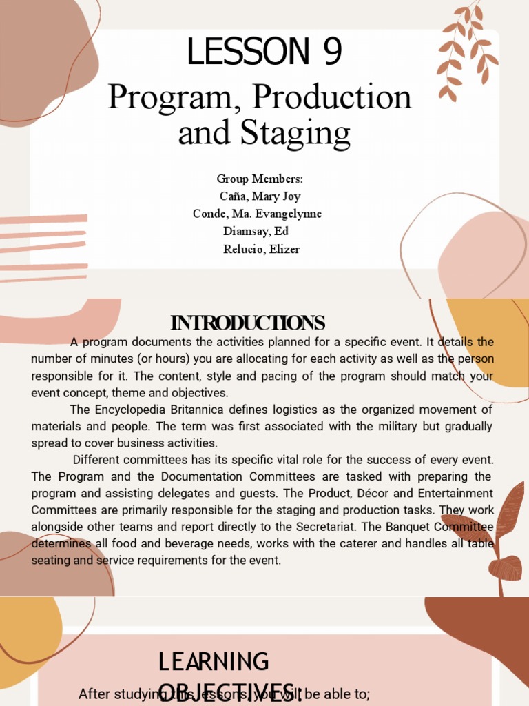 program and assisting delegates and guests. The Product, Décor and Entertainment