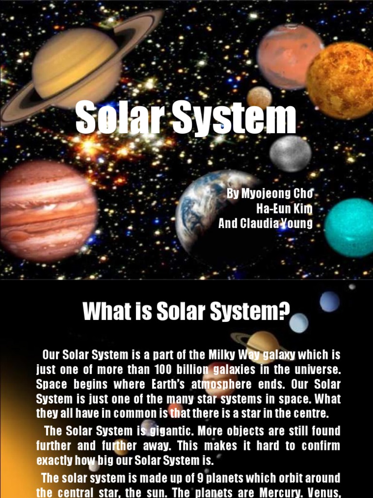Earth, Mars, Jupiter, Saturn, Uranus, Neptune and Pluto.