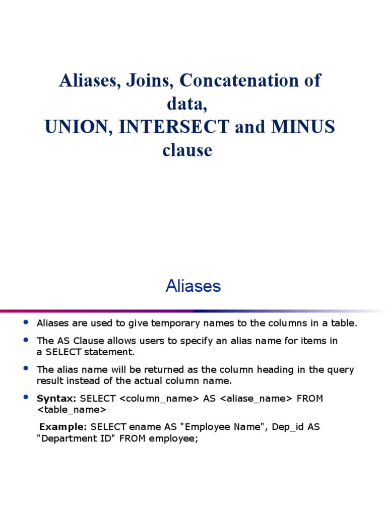 Aliases, Joins, Concatenation of