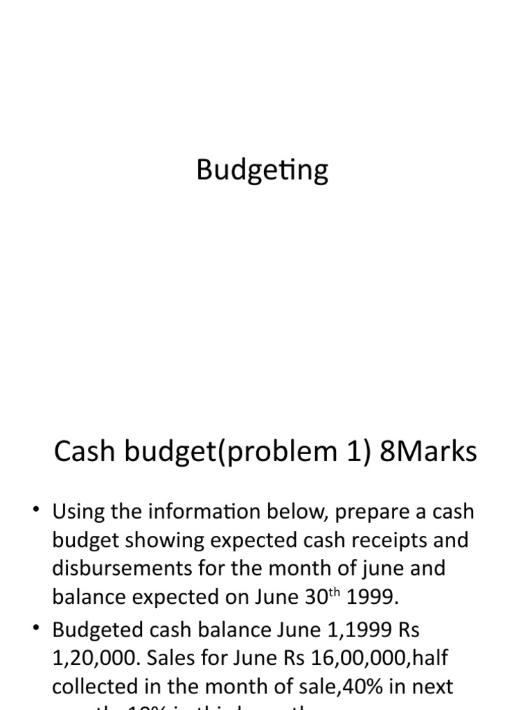 • (iii) cash balance 0n 1-10-1999 is expected to be 8,000