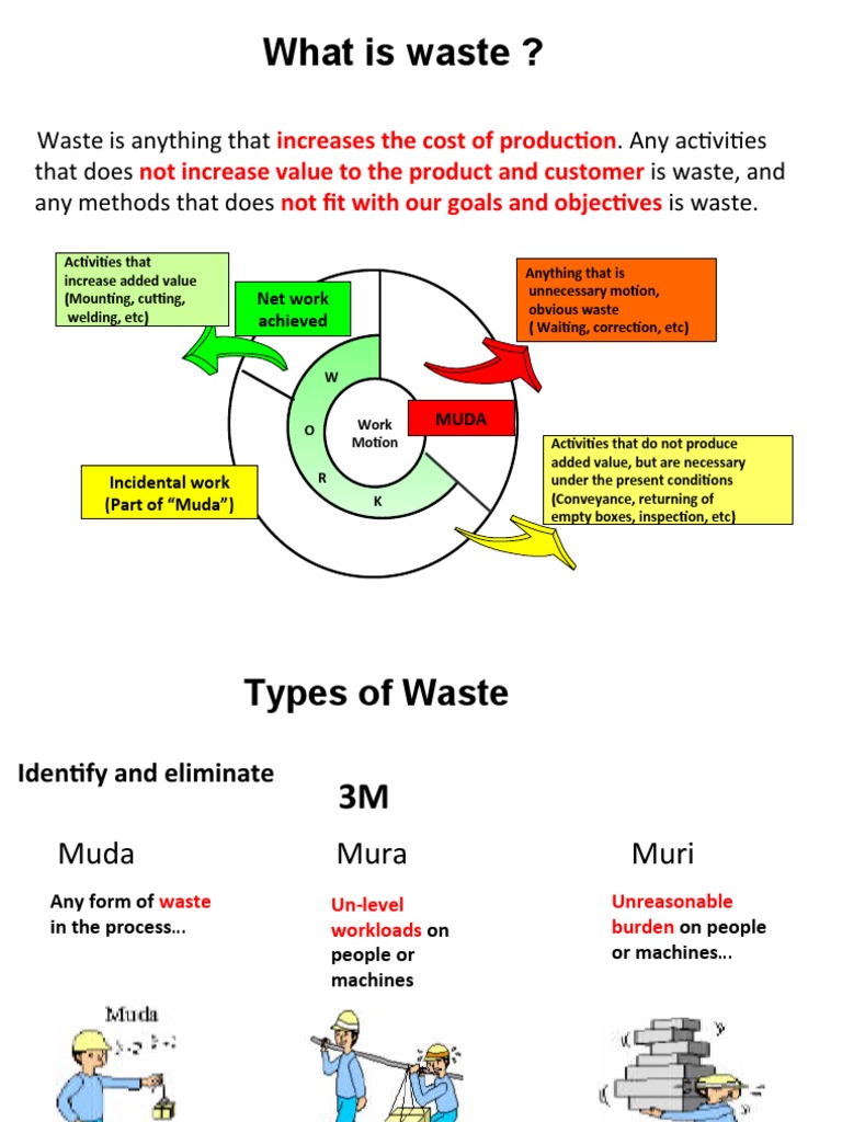 Waste is anything that increases the cost of production. Any activities