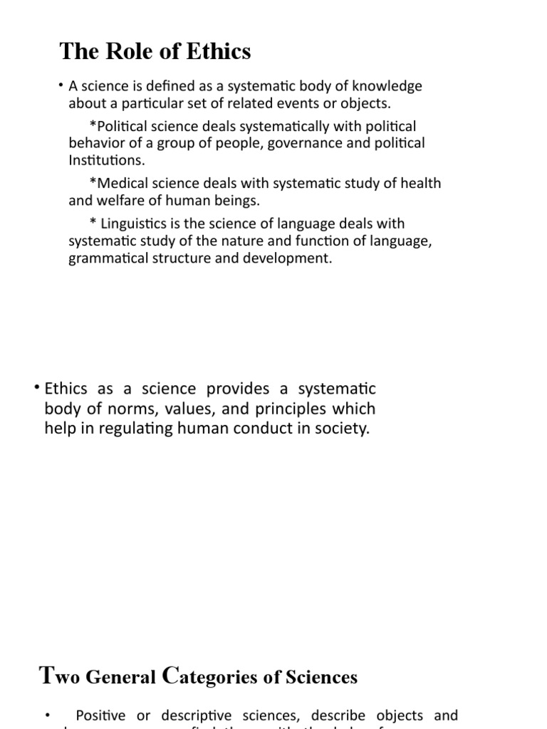 • It is asserted that ethics, in fact, “seeks to explain the place of morality in a