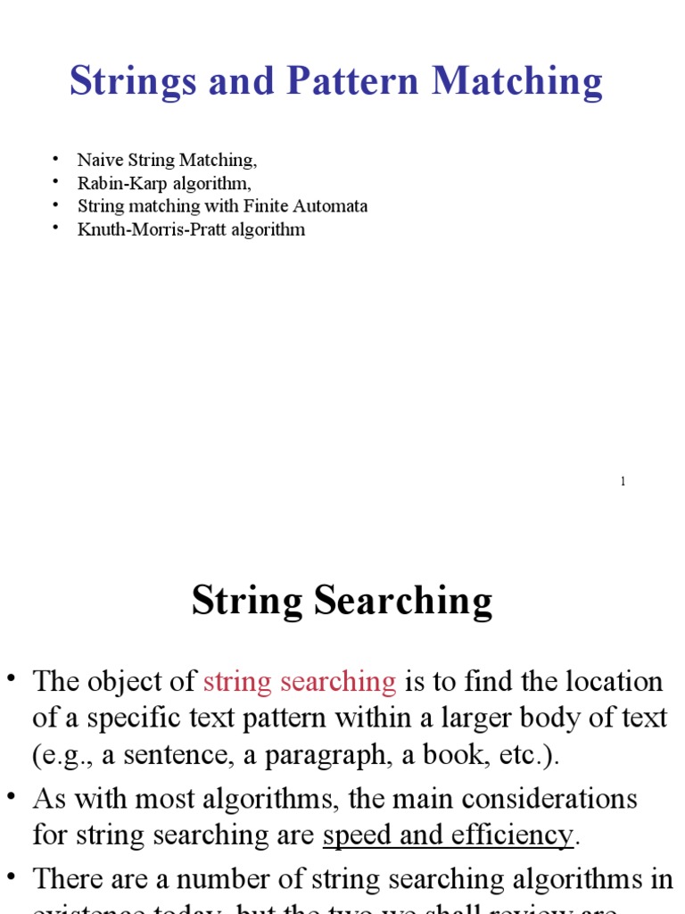 Naive String Matching and Rabin-Karp algorithm.