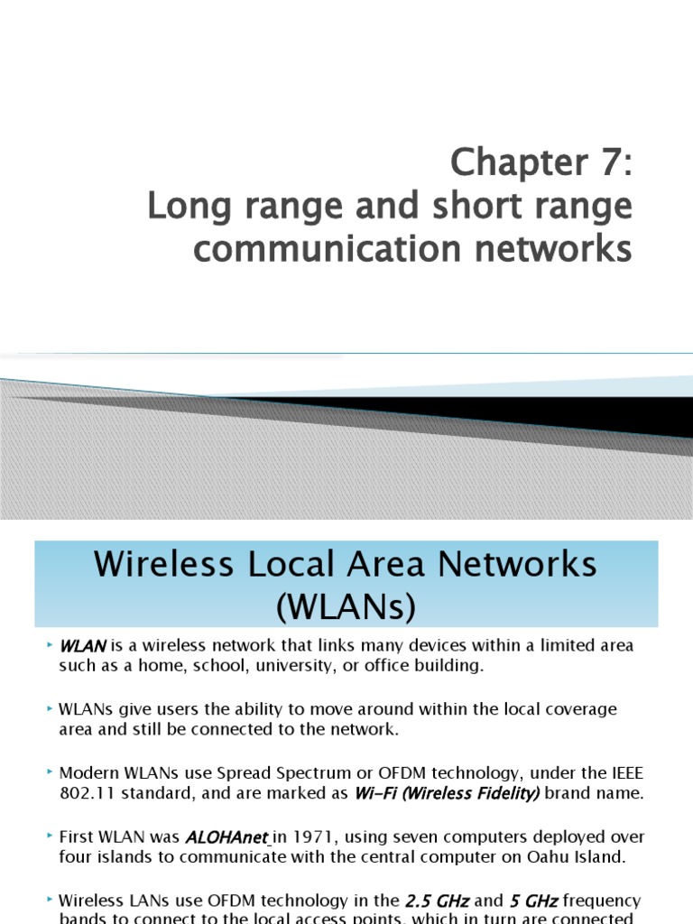 Modern WLANs use Spread Spectrum or OFDM technology, under the IEEE