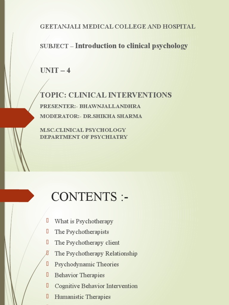 SUBJECT – Introduction to clinical psychology