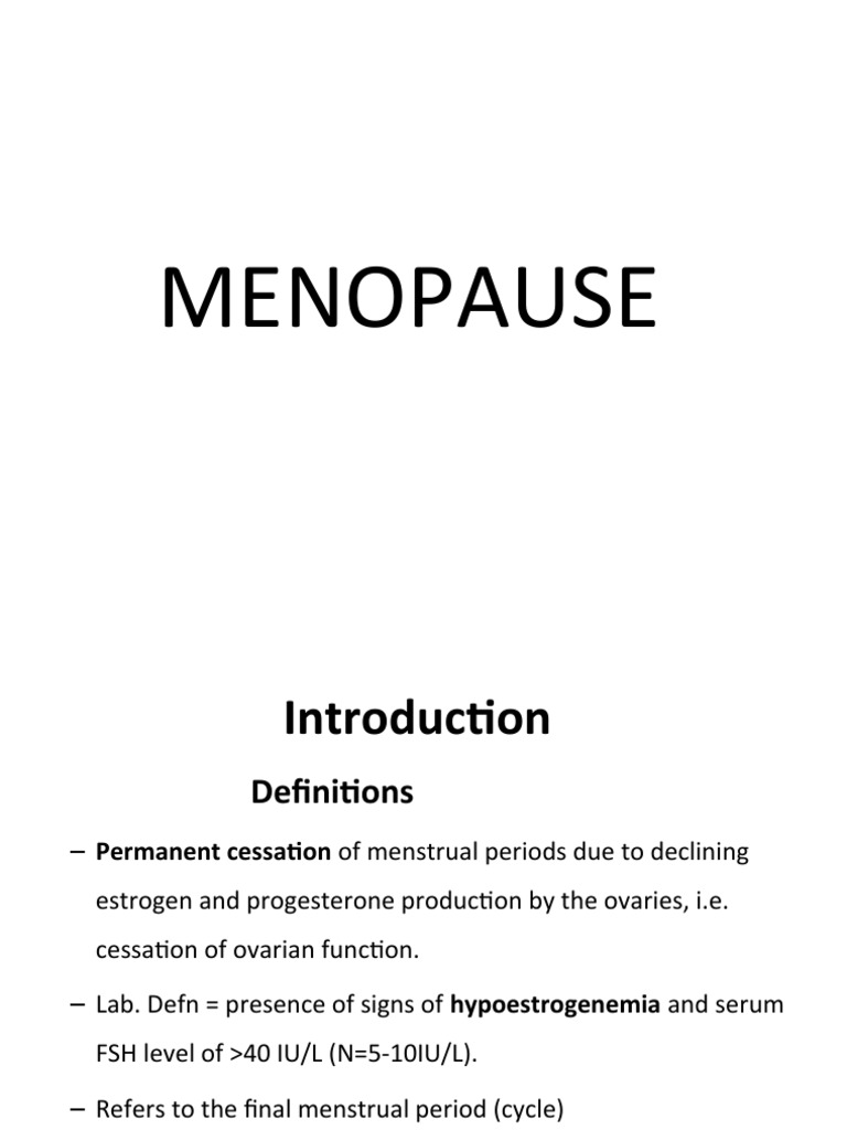 – Lab. Defn = presence of signs of hypoestrogenemia and serum