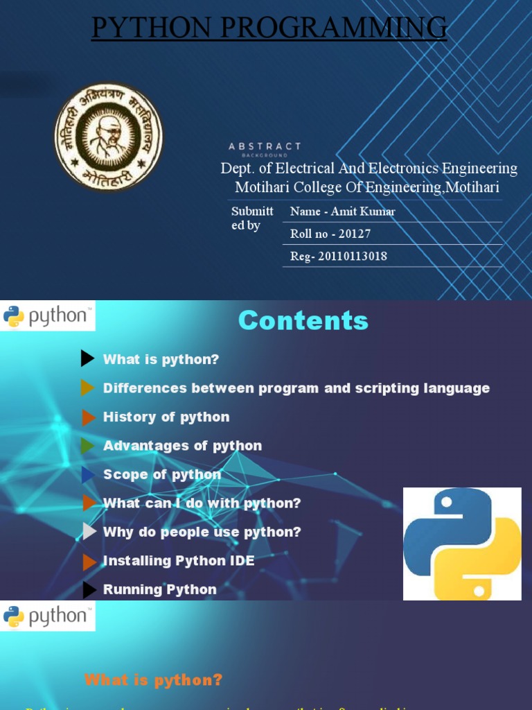 scripting roles. So, python is a programming language as well as a scripting