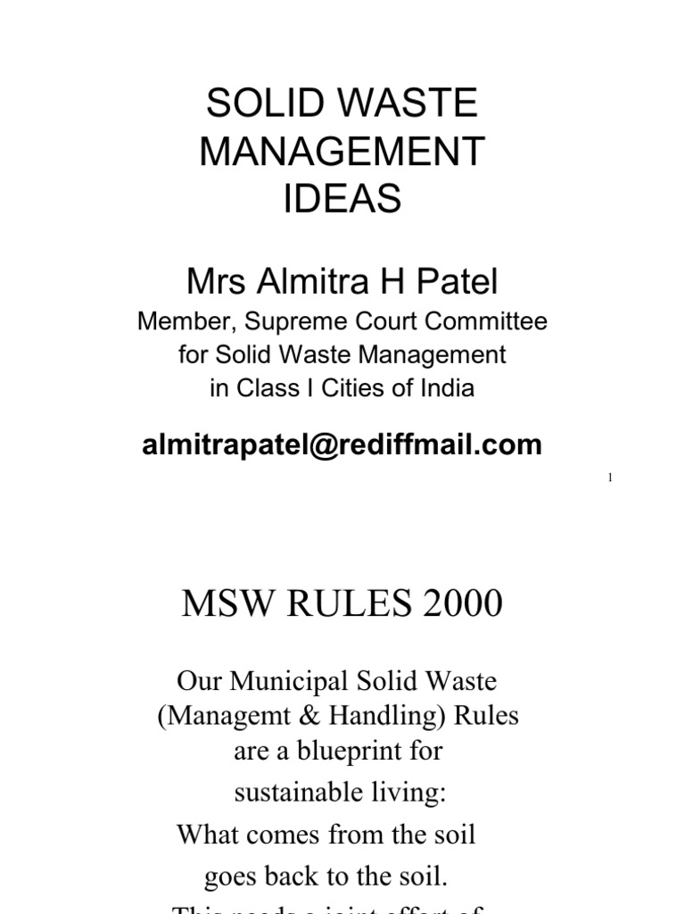 Our Municipal Solid Waste (Managemt & Handling) Rules are a blueprint for sustainable living: What comes from the soil goes back to the soil. This needs a joint effort of Citizens & their City managers