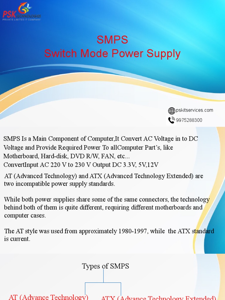 SMPS Is a Main Component of Computer,It Convert AC Voltage in to DC