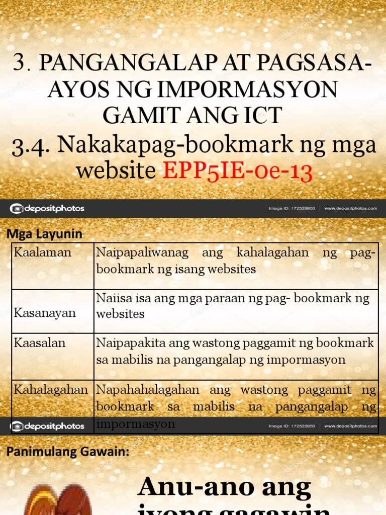 A. Pagsunod-sunurin ang mga hakbang sa pabobookmark ng
