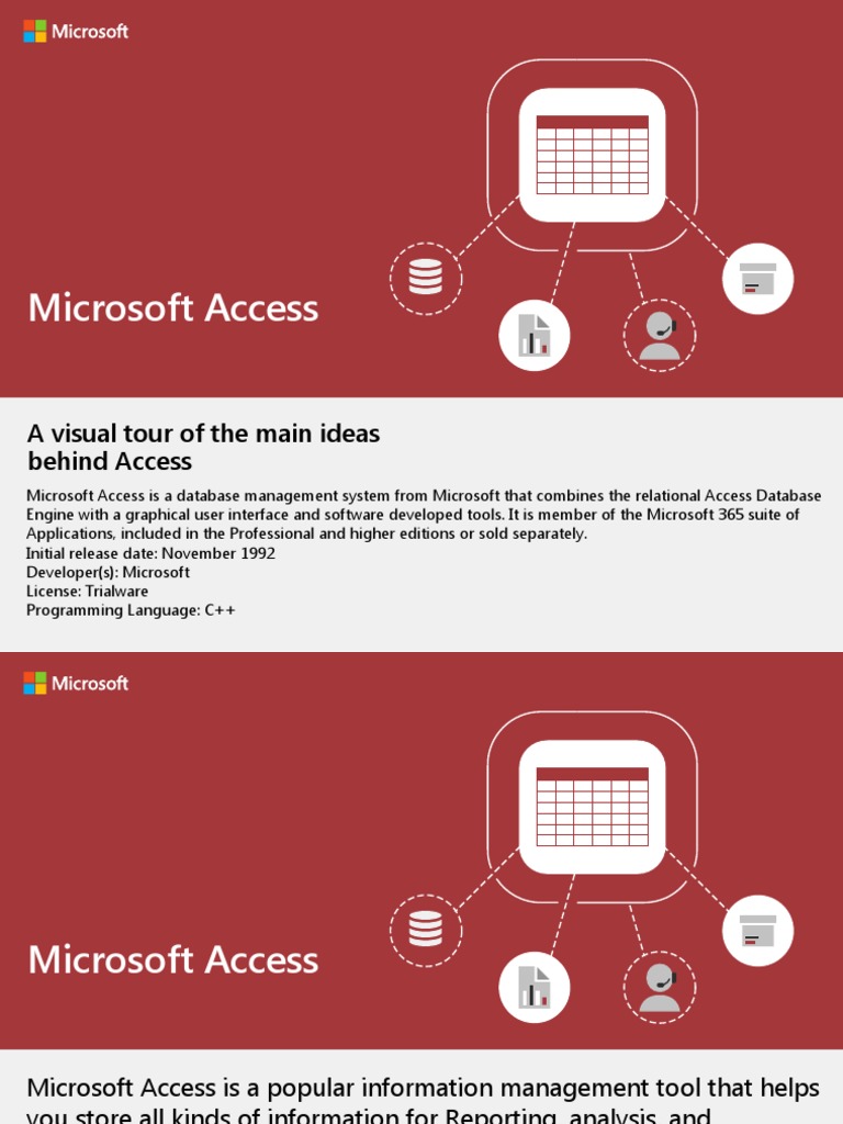Microsoft Access is a database management system from Microsoft that combines the relational Access Database