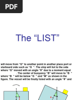 In practice, list problems are solved by taking moments about the keel to determine KG, then final GM, and then