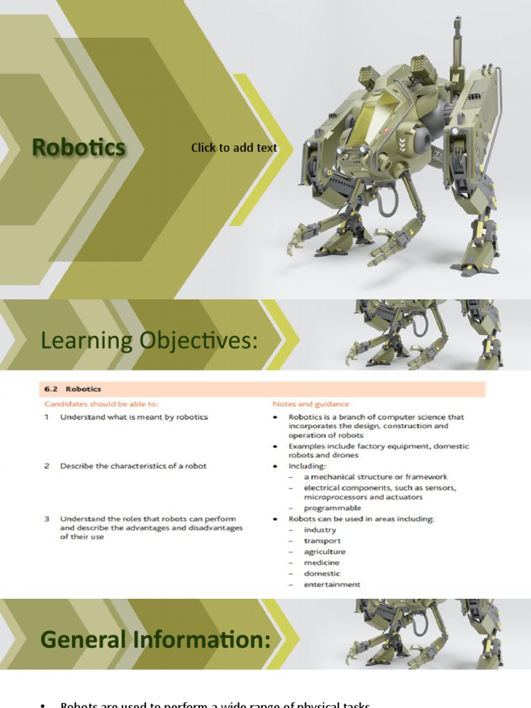 • A few characteristics of robots are: Ability to sense surroundings, have a degree of