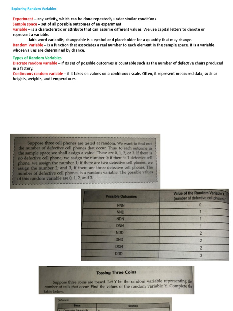 Random Variable – is a function that associates a real number to each element in the sample space. It is a variable