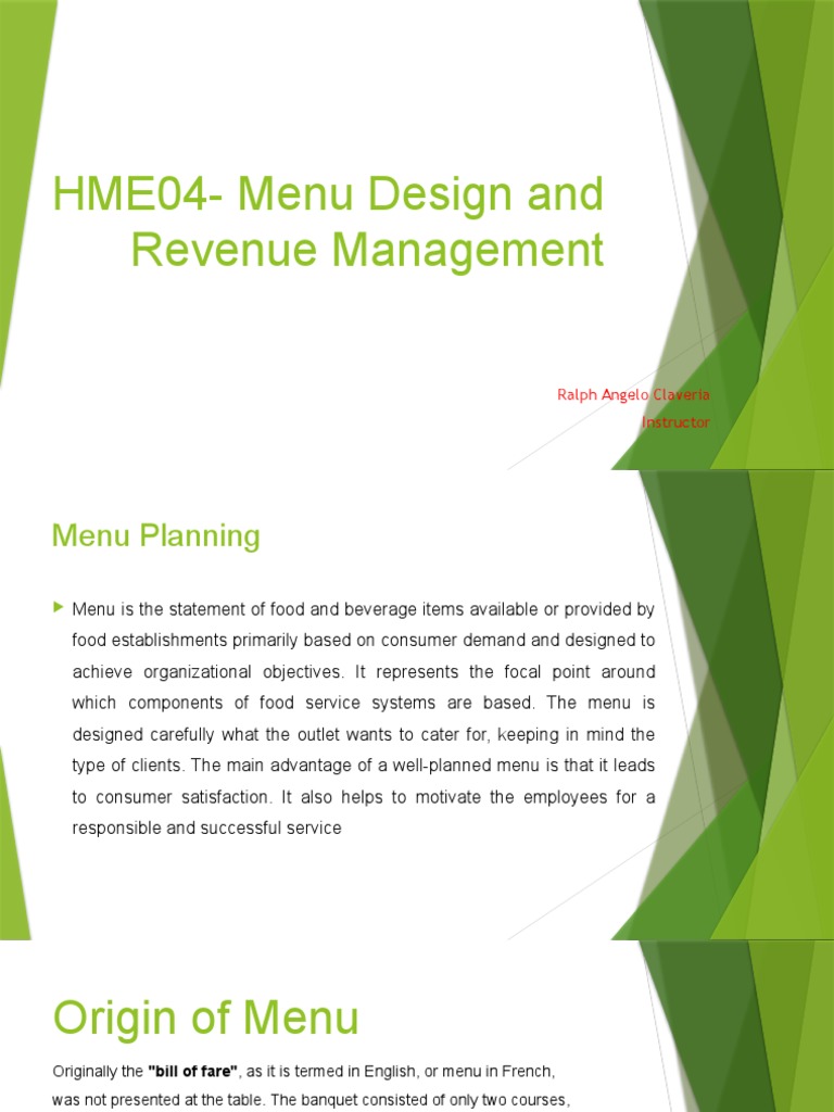 non. vegetarian dishes, genetically modified food, and so on. Dishes included in menu