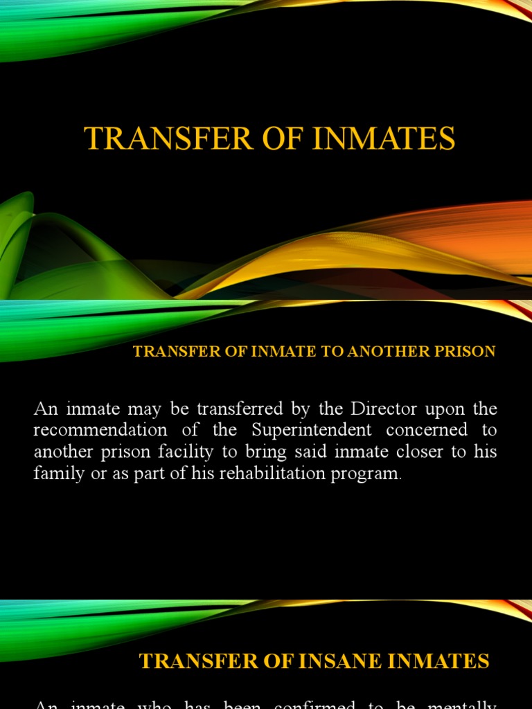 TRANSFER OF INMATE TO ANOTHER PRISON