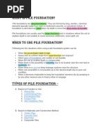 - Soil condition/ loads from structures/ performance/ number of piles to be used/