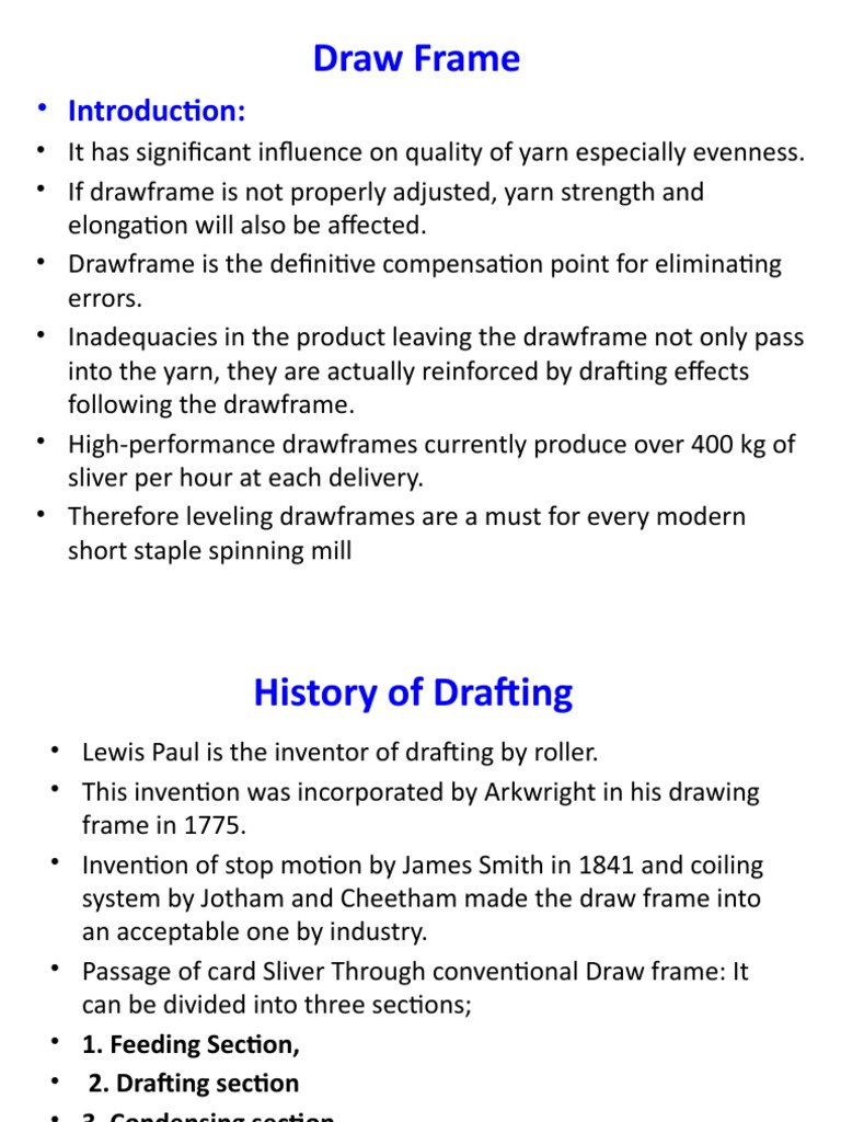 •The total draft on a drawing frame is performed in two steps: the break draft and the main
