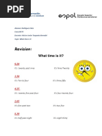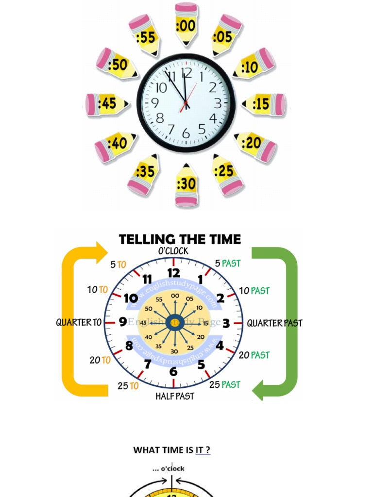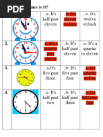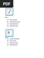 The document contains repetitions of phrases indicating times of day using common colloquial terms like "o'clock", "quarter past", "quarter to", and "half past". Each line states the time in this style, with the times including 5 o'clock, a quarter past seven, a quarter to ten, and half past six.