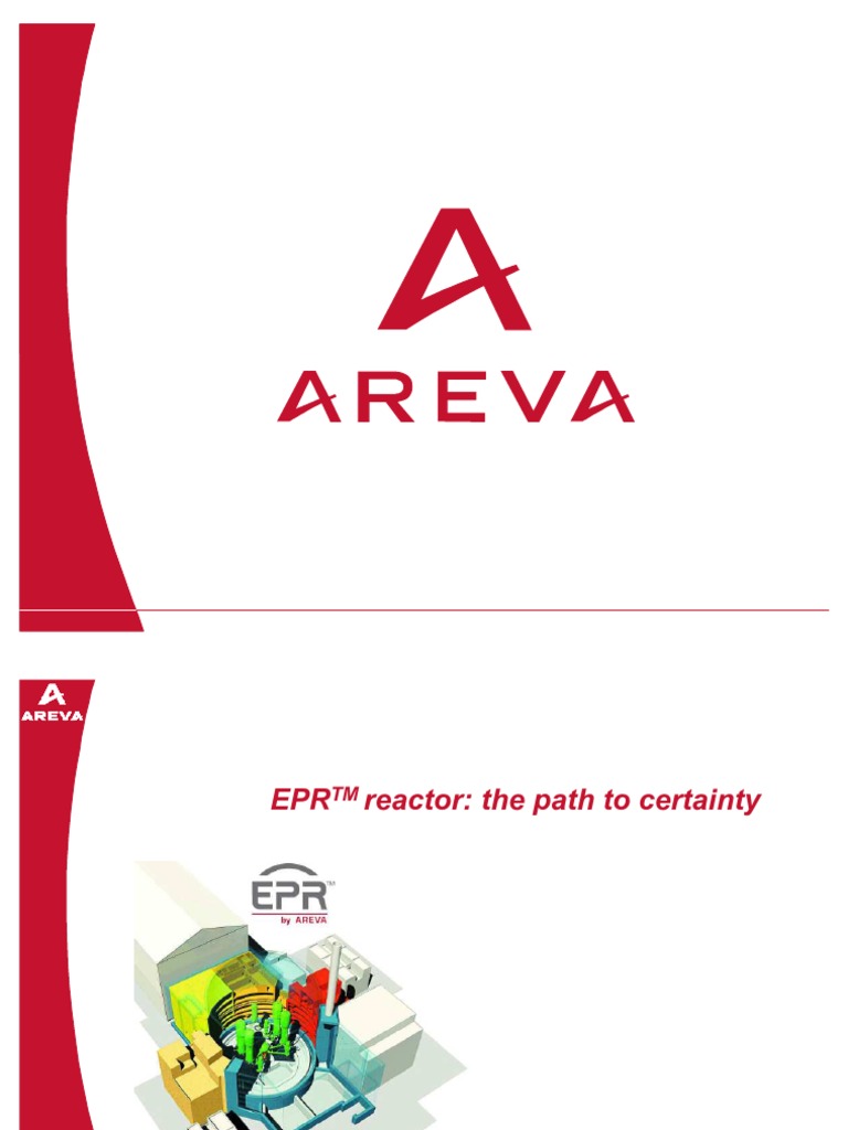 Taishan, China Nov 26, 2007 Taishan Nuclear Power Company (TSNPC) AREVA in consortium with 2 subsidiaries of CGNPC 2 EPR units and the materials and services to operate them: -Nuclear Island Engineering & Procurement (NI EP) - Nuclear Steam Supply System (NSSS) - Balance of Nuclear Island (BNI) -Supply fuel and enriched uranium for 15 years Aug 2009 1,660 MWe 4,590 MWth 2013-14