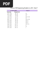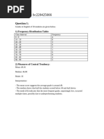 The document shows the scores and frequencies of 50 students on a quiz, with the highest score being between 46-50 achieved by 4 students, the next highest between 41-45 by 8 students, and the lowest between 21-25 by 6 students. The majority of students, 11, scored between 36-40.