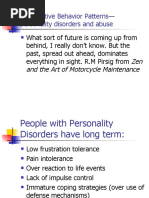 Unresponsive to parent or adult Fearful to physical contact Inconsistent history or injury Lack of reaction to frightening events Uncooperative during care Accepts pain Becomes aggressive Unusually affectionate & outgoing Superficial relationship Extreme behavior