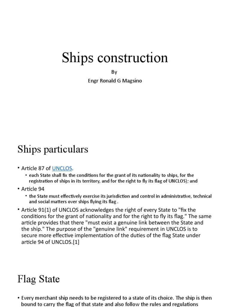 • Every merchant ship needs to be registered to a state of its choice. The ship is then