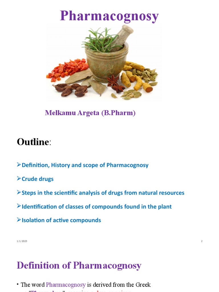 • The American Society of Pharmacognosy defines Pharmacognosy as: