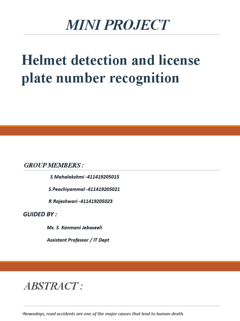 • Once the motorbike is detected, by CNN, it identifies whether the motorcyclist is wearing a