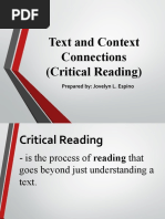 Critical reading involves the process of analyzing