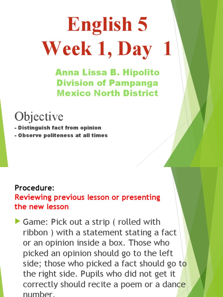 concepts and skills in Fact or Opinion Explain: