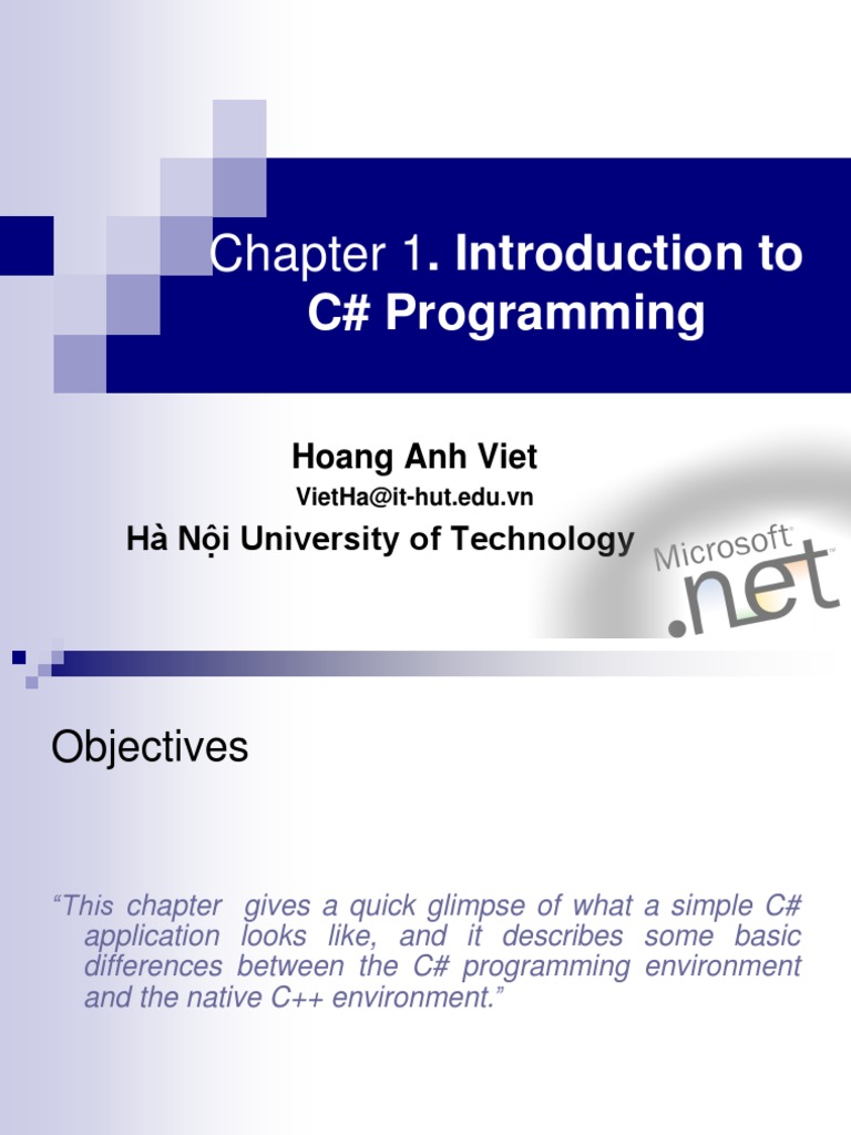 This chapter gives a quick glimpse of what a simple C# application looks like, and it describes some basic differences between the C# programming environment and the native C++ environment.