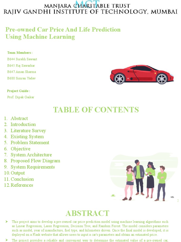 lifespan of used car using various machine learning models. This will enable the customer to make a