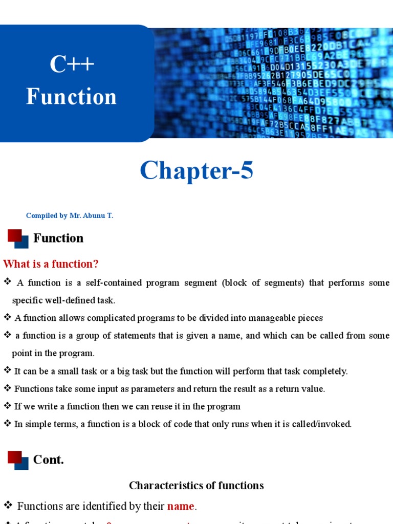 While creating a C++ function, you give a definition of what the function has to do. To use a