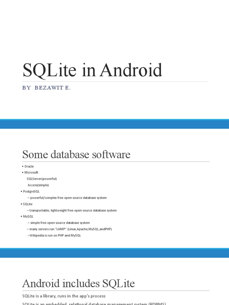 ◦ provides a mechanism for implementing organized persistent data storage for Android applications.