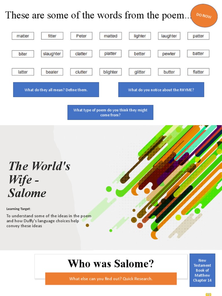 • Who is 'Salome'/speaker in this poem and what do we know about her? Work wi
