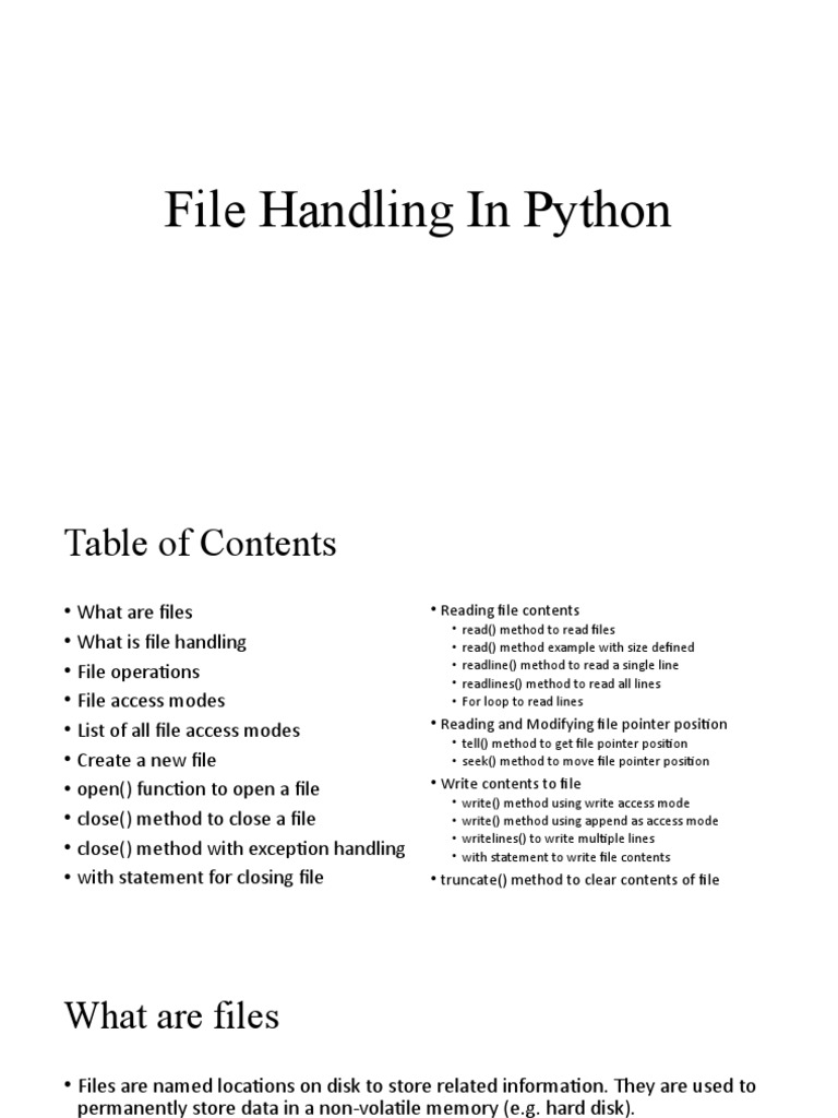 r beginning. The file is by default open in this mode if no access w+ it overwrites the previous file. It creates a new file if no file exists. The file