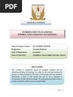 The word 'Statistics' is used in both its singular as well as its plural senses.