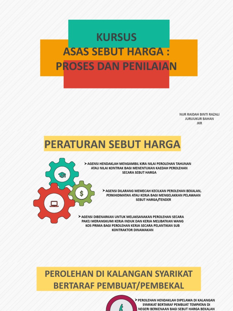 1. Dikaji dan dinilai sebelum syor 3. Bagi sebut harga tertentu, jika
