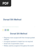 Mark the line of the outside cut, just below the corona Mark the intended outer line of the incision with a V- shape, pointed towards the frenulum, on the underside of the penis The apex of the V should correspond with the midline raphe